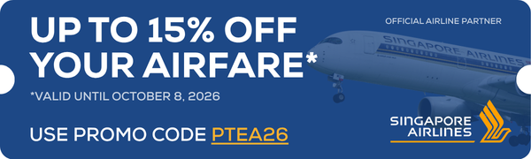 Book your flights using the code PTEA26 courtesy of our Official Airline Partner, Singapore Airlines.